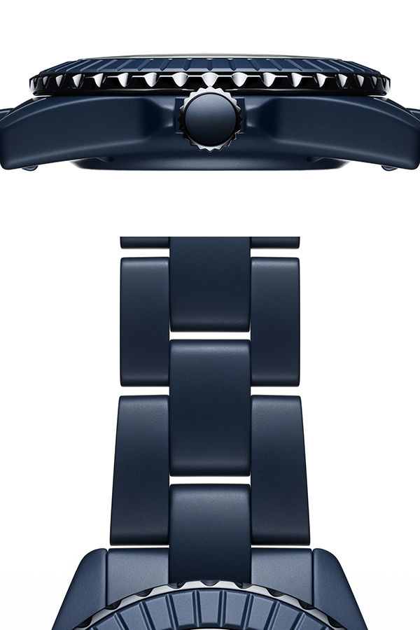 極端さを厭わないシャネルは、「J12 BLEU サファイア」に42mmケースと28mmケースという、通常のJ12では展開のない2つサイズを取り入れました。