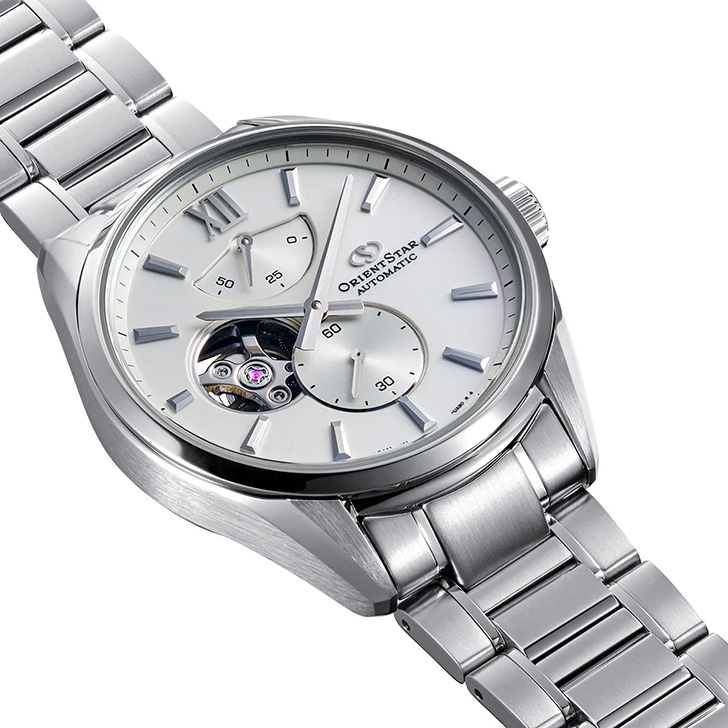 「輝ける星」を理想に掲げて技術、デザイン、品質の洗練に取り組んできたオリエントスターの世界観を文字板のカラーやディテール、素材を通じて表現してきました。最新作は2枚構造のダイヤルが立体感を演出しながらダイヤル全体がワントーンになることで、着用シーンを選ばず幅広いスタイルに合わせやすいデザインとなっています。