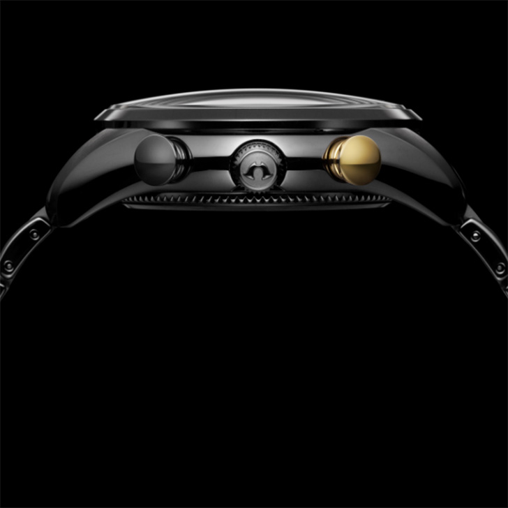 プッシュボタンと合わせて、ゴールドが腕元で印象的に映えます。