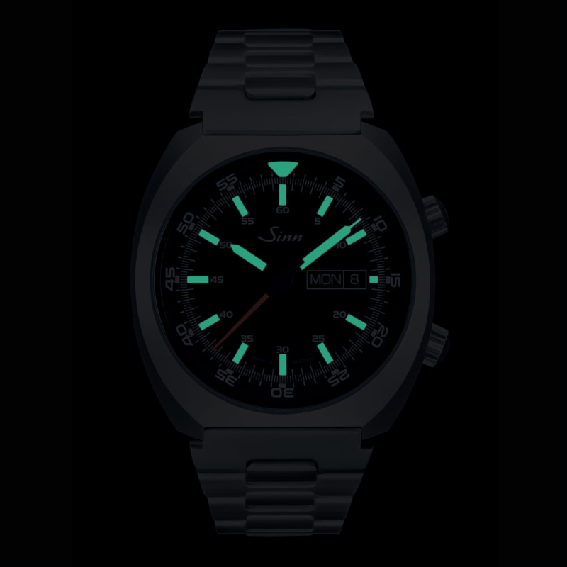 【Sinn】は特殊オイル66-228・Arドライテクノロジー・ハイドロシステム・マグネチックフィールドプロテクション・テギメント加工など、様々な技術を用い、視認性、機能性を最重要視したプロユースのドイツ製腕時計です。 1985年にドイツの物理学者兼宇宙飛行士のラインハルト・フラーが、スペースラブD1ミッションの際にオリジナルモデルを装着し、自動巻時計が無重力空間でも作動するということを立証した【スペース・クロノグラフ】のレギュラーモデル。 【240.ST】はスペースクロノグラフ140の三針モデルとして作成されました。クラシックなデザインのケースを備えたことで、シンプルな構造で高い視認性を誇ります。夜光は時・分針・インデックスに施し、暗所での視認性も完璧です。曜日表示はドイツ語・英語を選択できます、 是非ご試着にご来店ください!