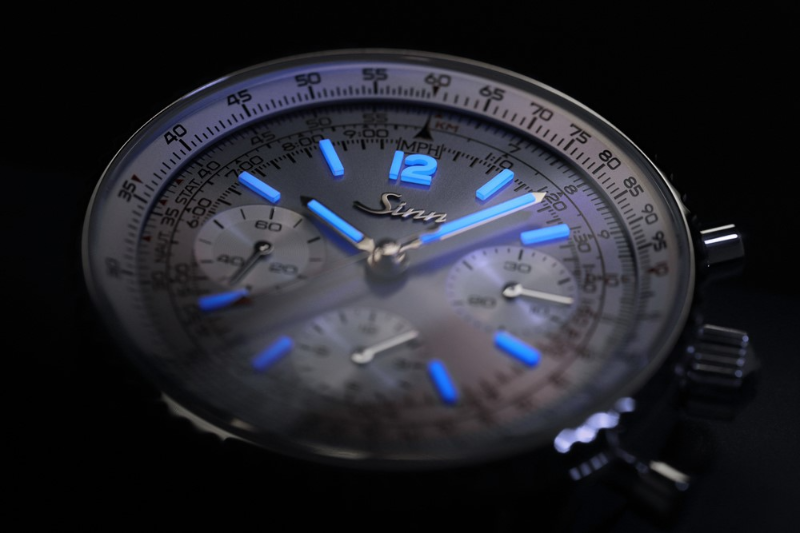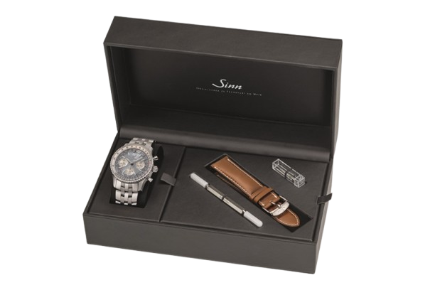 【Sinn】は特殊オイル66-228・Arドライテクノロジー・ハイドロシステム・マグネチックフィールドプロテクション・テギメント加工など、様々な技術を用い、視認性、機能性を最重要視したプロユースのドイツ製腕時計です。 Sinnはナビゲーション・クロノグラフを数十年も作り続けており、その代表モデルが【903】シリーズです。対数目盛付計算尺ベゼルで時間・距離・燃料消費量が計算できます。 約60時間パワーリザーブのコラムホイール・クロノグラフ・ムーブメントを備え、アップライドで施されたバーインデックスと12は、ハイブリッド・セラミックの夜光塗料を使用。複雑な機構でありながら防水性は20気圧に達します。ライトブルーのサンレイ文字盤は世界500本の限定モデルです。 なくなり次第終了となります、ご検討はお早めに!