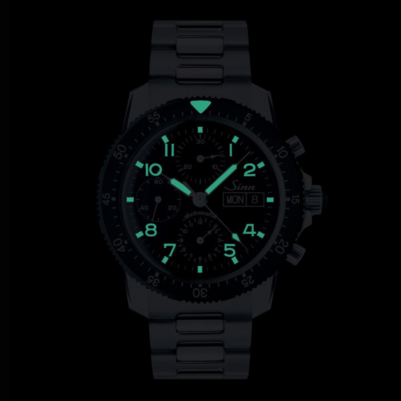 【Sinn】は特殊オイル66-228・Arドライテクノロジー・ハイドロシステム・マグネチックフィールドプロテクション・テギメント加工など、様々な技術を用い、視認性、機能性を最重要視したプロユースのドイツ製腕時計です。 【103】シリーズの優れた視認性はシンプルなダイヤルから生み出されたパイロットウォッチです。60年代ドイツ空軍で正式採用されていた【155】を踏襲し、両方向回転式ベゼルを装備しています。強化アクリルにすることで風防交換ではなくポリッシュで傷を落とすことができ、預かって修理している時間やコストまで考えた実戦的なスペックを当時のドイツ軍から要望されて搭載しています。 スクリューバックにすることで、コストが抑えられた、クラシックなデザインを採用したハイコスパなパイロットクロノグラフです。 是非ご試着にご来店ください!