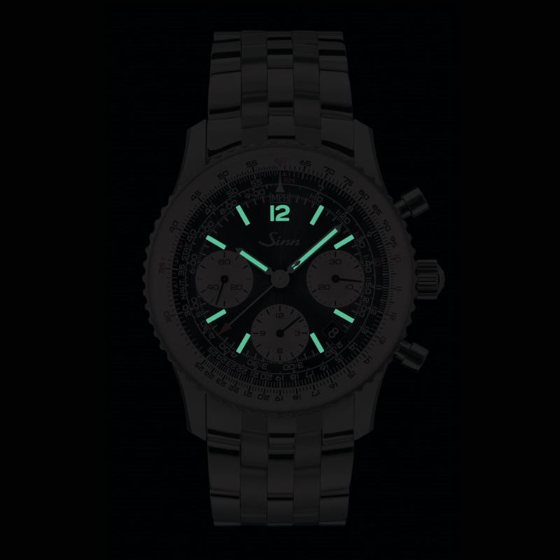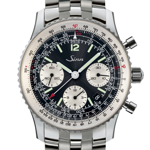 【Sinn】は特殊オイル66-228・Arドライテクノロジー・ハイドロシステム・マグネチックフィールドプロテクション・テギメント加工など、様々な技術を用い、視認性、機能性を最重要視したプロユースのドイツ製腕時計です。 Sinnはナビゲーション・クロノグラフを数十年も作り続けており、その代表モデルが【903】シリーズです。対数目盛付計算尺ベゼルで時間・距離・燃料消費量が計算できます。 約60時間パワーリザーブのコラムホイール・クロノグラフ・ムーブメントを備え、アップライドで施されたバーインデックスと12は、ハイブリッド・セラミックの夜光塗料を使用。複雑な機構でありながら防水性は20気圧に達します。定番のブラックダイヤルが使いまわしがしやすいモデルです。 是非ご試着にご来店ください!
