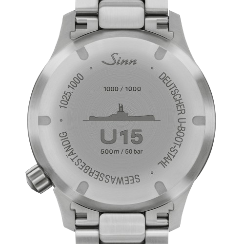 【Sinn】は特殊オイル66-228・Arドライテクノロジー・ハイドロシステム・マグネチックフィールドプロテクション・テギメント加工など、様々な技術を用い、視認性、機能性を最重要視したプロユースのドイツ製腕時計です。 Uシリーズ20周年を記念して作られた【U15】は、実際の海を何十万キロも航海した206型潜水艦から作られた時計です。退役した潜水艦のUボート・スチールをケース(裏蓋)に使用しています。 オリジナルの潜水艦から切り出した、モデル名を刻印したスチール製の鋼鉄が付属し、世界で1000本の限定品になります。 なくなり次第終了となります、ご検討はお早めに!