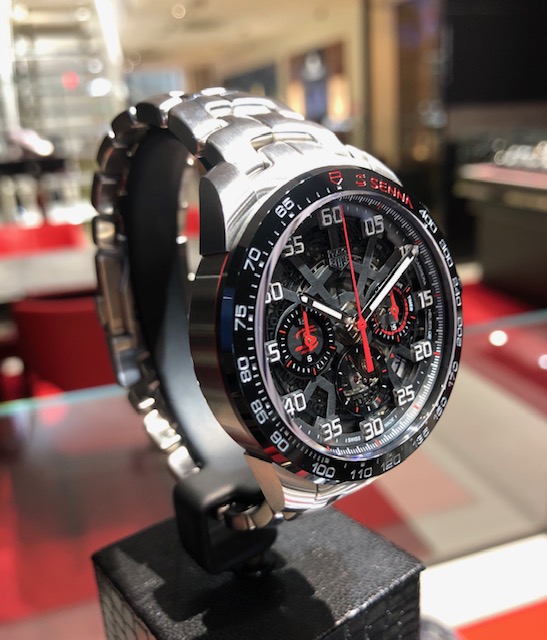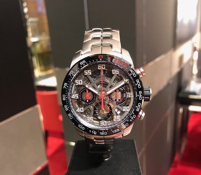 フォーミュラ1の伝説的人物アイルトン・セナに特別に捧げるキャリバーホイヤー02 搭載モデルの時計です。