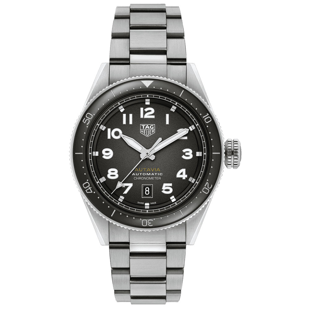 ヴィンテージ風のブラウン スモークダイアルとブラックセラミックの回転ベゼル付きの42mmウォッチ。