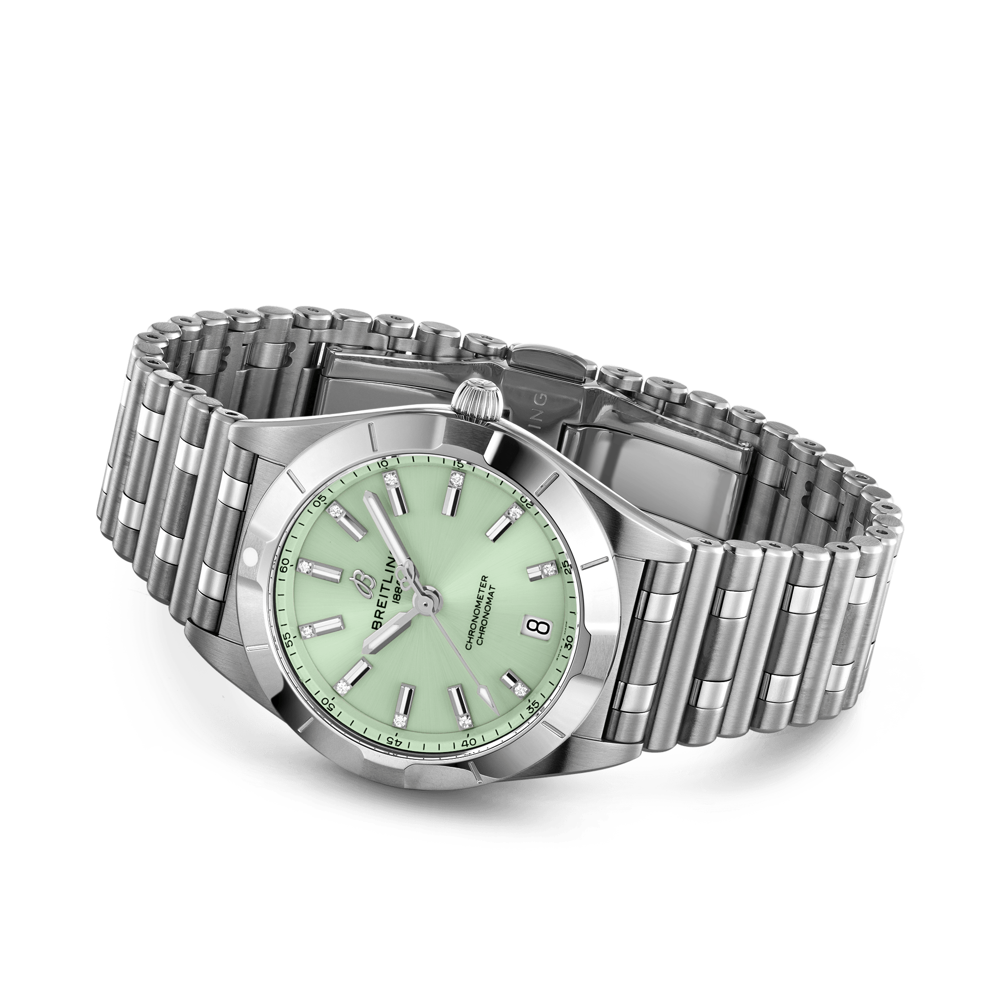 人気のあるグリーン系のダイヤルは、腕元を明るく華やかに見せてくれる美しい色となります。