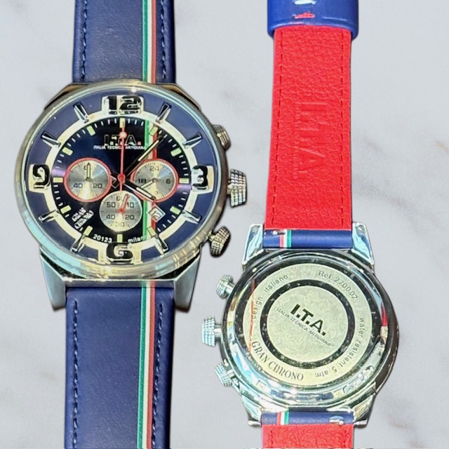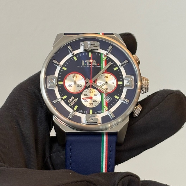仕様:日本限定、100本、クオーツ、デイト、トリコロールカラー、サンレイ文字盤、クロノグラフ、24時間計、積算計