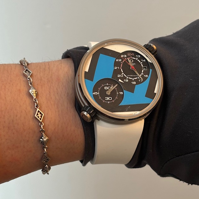 仕様:1本1本絵柄が異なるダイアル、パワーリザーブ約38時間、デイト、2タイムゾーン