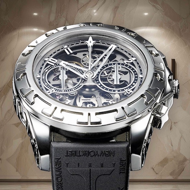 仕様:パワーリザーブ約48時間、デイデイト、クロノグラフ、フォールディングバックル、シースルーバック、スケルトン