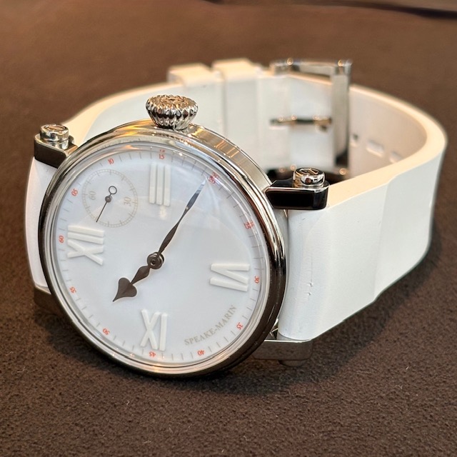 仕様:パワーリザーブ約52時間、28,800振動/時、スモールセコンド、ホワイトラッカーダイヤル、ホワイトマット&スーパールミノバインデックス、シースルーバック、ビックベン針