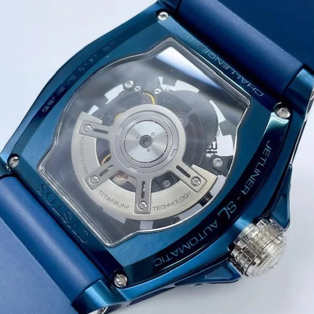 仕様:スケルトン、オープンワーク、デイト、フォールディングバックル、ねじ込み式リューズ、シースルーバック