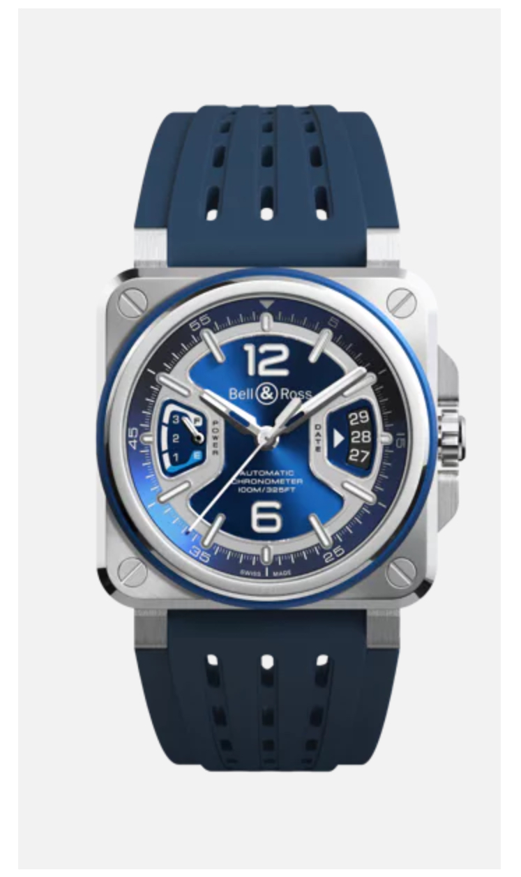 BR-X3 Blue Steelのシルバーダイヤルは、ブルーのディティールとサンレイ仕上げにより、コレクションを象徴するXを際立たせます。ポリッシュとマイクロブラスト仕上げが、エレガンスと高度な技術を融合しました。蓄光加工のインデックス、数字、針により、完璧な視認性を確保し、ブルーアルマイト処理のベゼルとコラムが、精緻で洗練されたスタイルをさらに引き立てます。前衛的かつ未来的なデザインを備えた、テクニカルで貴重なウォッチです。