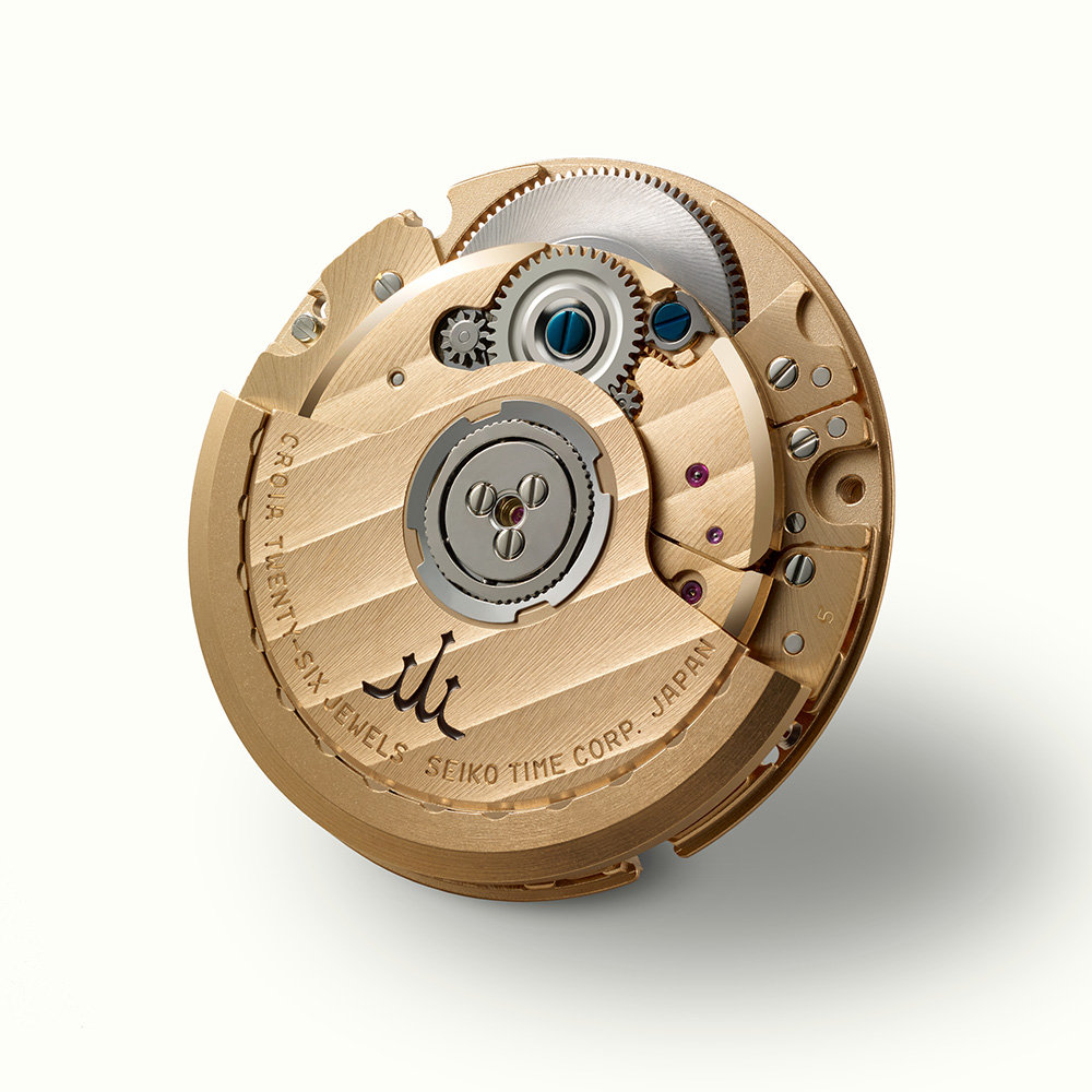 この時計には、クレドール専用の自動巻きムーブメント「キャリバーCR01」が搭載されています。薄型の3針メカニカルムーブメントに仕上げたことで、クオーツムーブメントを搭載したオリジナルモデルと同様に、厚さ9mm以下のエレガントなフォルムを実現しました。