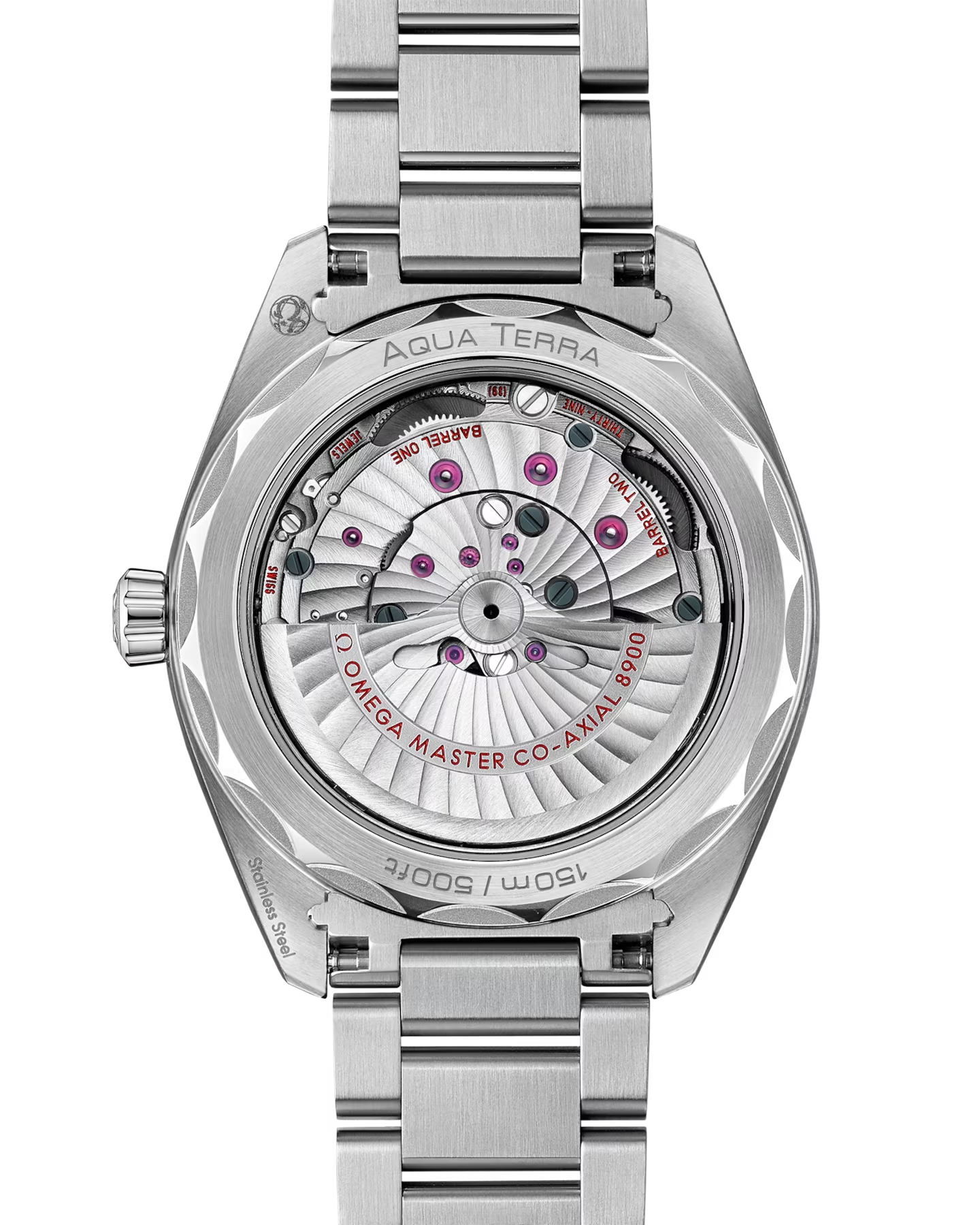 海に携わってきたオメガの長い歴史を代表する「シーマスター アクアテラ」。シンメトリーな41mmのケースはステンレススティール製で、ケースバックにはウェーブ模様で縁取られたデザインが施されています。