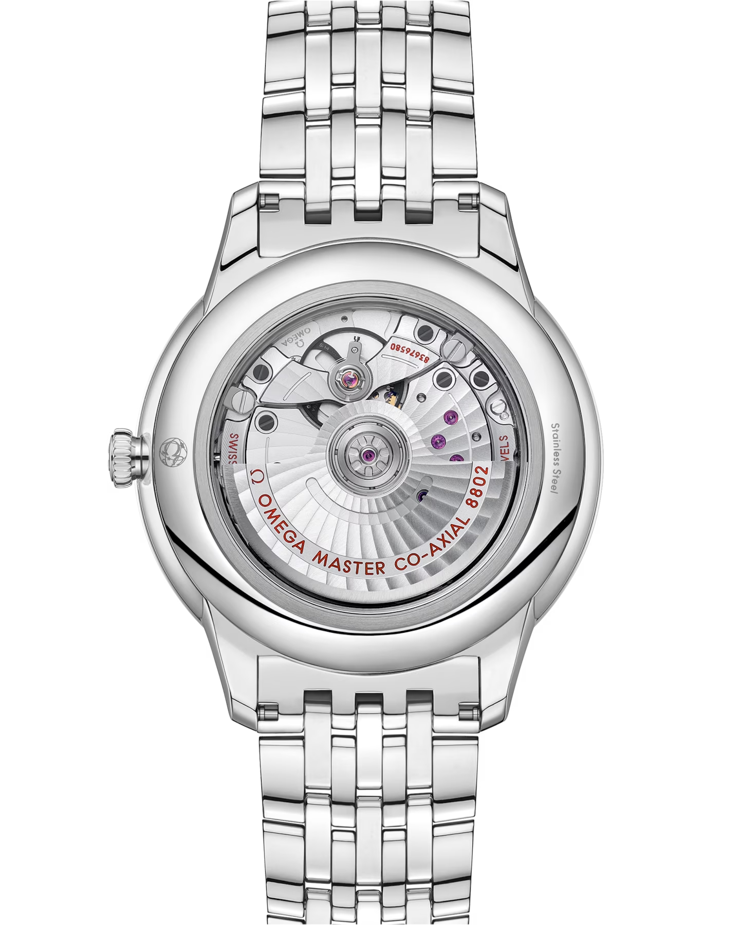 マスター クロノメーター認定を取得したこの時計は、ステンレススティール製ブレスレットを備え、オメガ マスター コーアクシャル キャリバー8802を傷の付きにくいサファイアクリスタル製ケースバックから眺めることができます。