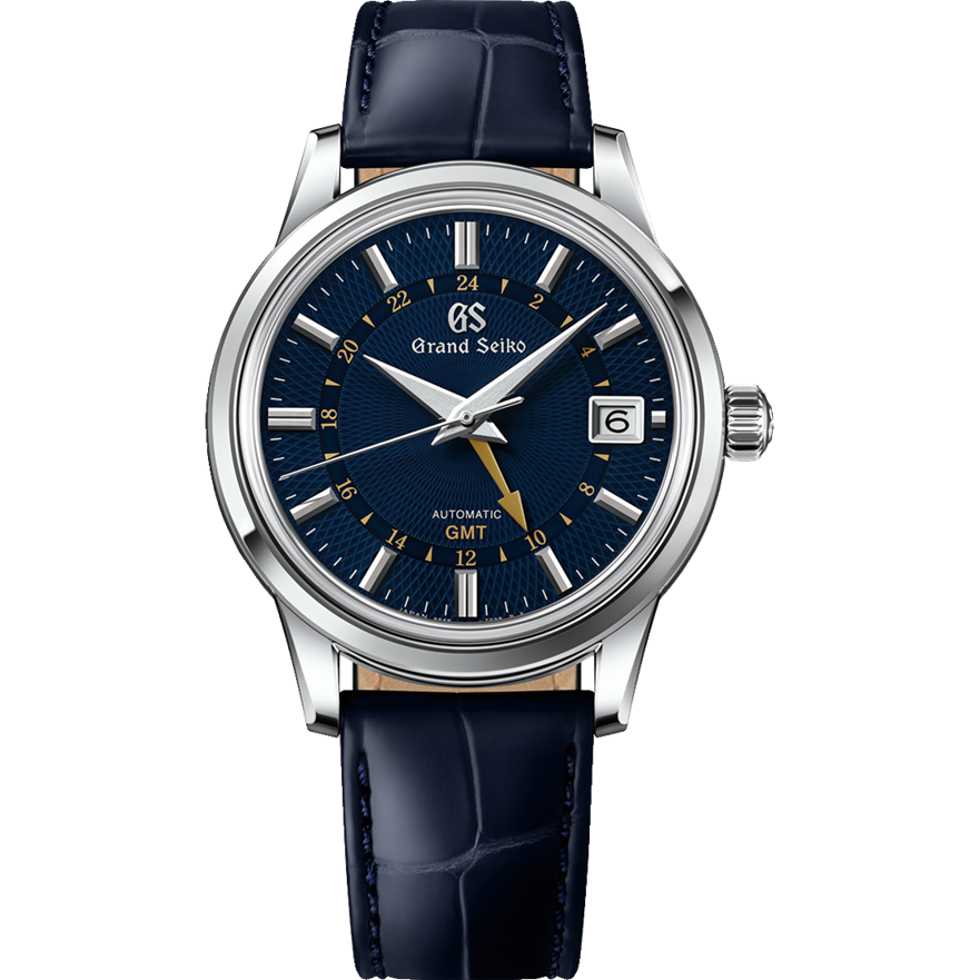 秋の季語「月雫」から着想を得て、月の光を浴びて輝く儚い露をダイヤルに表現したクラシックスタイルのGMT機能付きモデルです。モダンな幾何学螺旋模様は、光の角度によって表情を変え、奥行きと動きを感じさせます。精緻なパターンが、ダイヤルに上質な立体感を与えます。搭載するムーブメントはメカニカル「キャリバー9S66」。最大巻上時約72時間(約3日間)の持続時間を確保しており、第二時刻を同時に指し示すGMT機能を備えています。ゴールドカラーの24時針が織りなす上品なクラシックスタイルに、モダンなダイヤルデザインが調和し、グランドセイコーならではの優雅さを演出します。