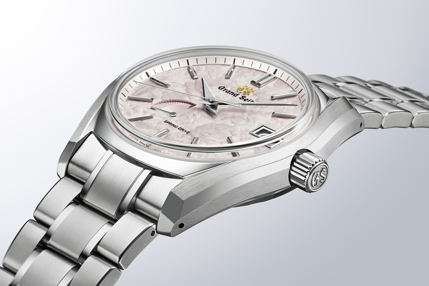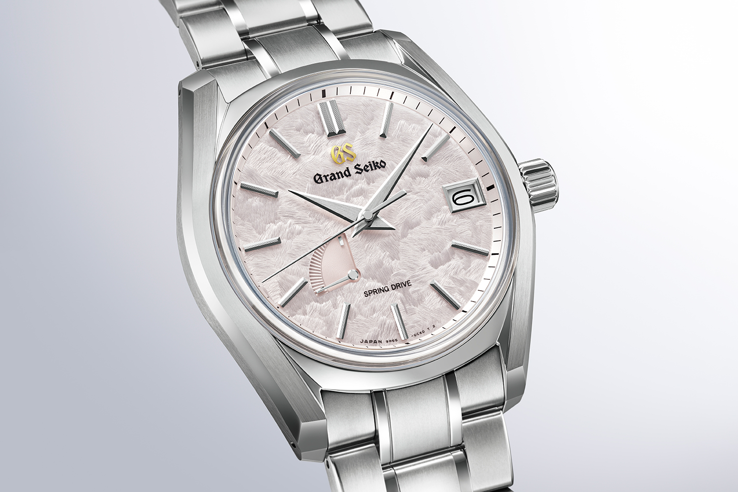 日本では古来より一年を二十四等分して季節の移ろいを捉えてきました。その時々の自然を愛で、その時ならではの恵みを享受し、人の営みを自然にあわせて暮らしてきました。本作は、春分の頃、見ごろを迎えた桜が風に舞い、川に散り積もり流れゆく情景「花筏(はないかだ)」をモチーフに、その季節にしか出会えない束の間の美しさを、淡いピンクのダイヤルで表現しています。
