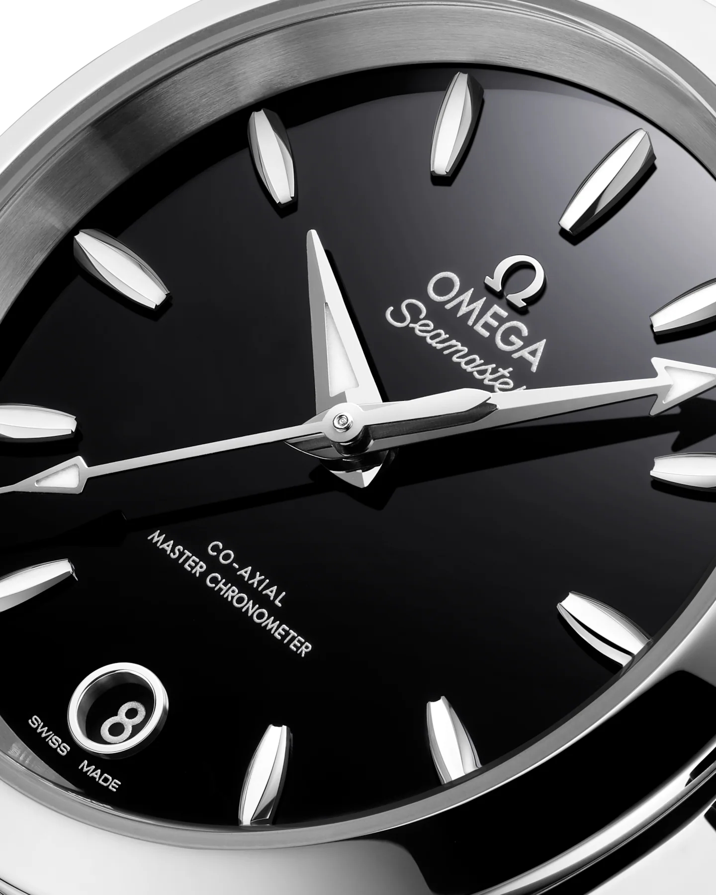 オメガと海の豊かな歴史にオマージュを捧げる「シーマスター アクアテラ」。 ケースサイズ34mmのこのモデルは、ステンレススティール製のシメントリーなケースに、エッジが波模様にデザインされたねじ込み式ケースバックを備えています。