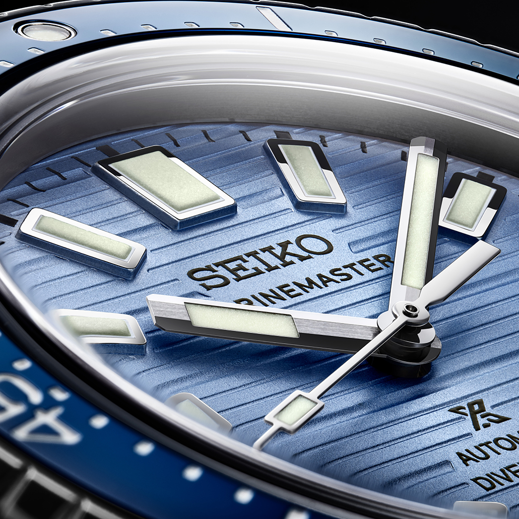 1965年に発売した国産初のダイバーズウオッチとなる初代モデルの意匠である、時・分・秒針の形状と特徴的な角型インデックスを継承するとともに、高輝度ルミブライトを塗布し、暗い場所でも高い視認性を確保します。