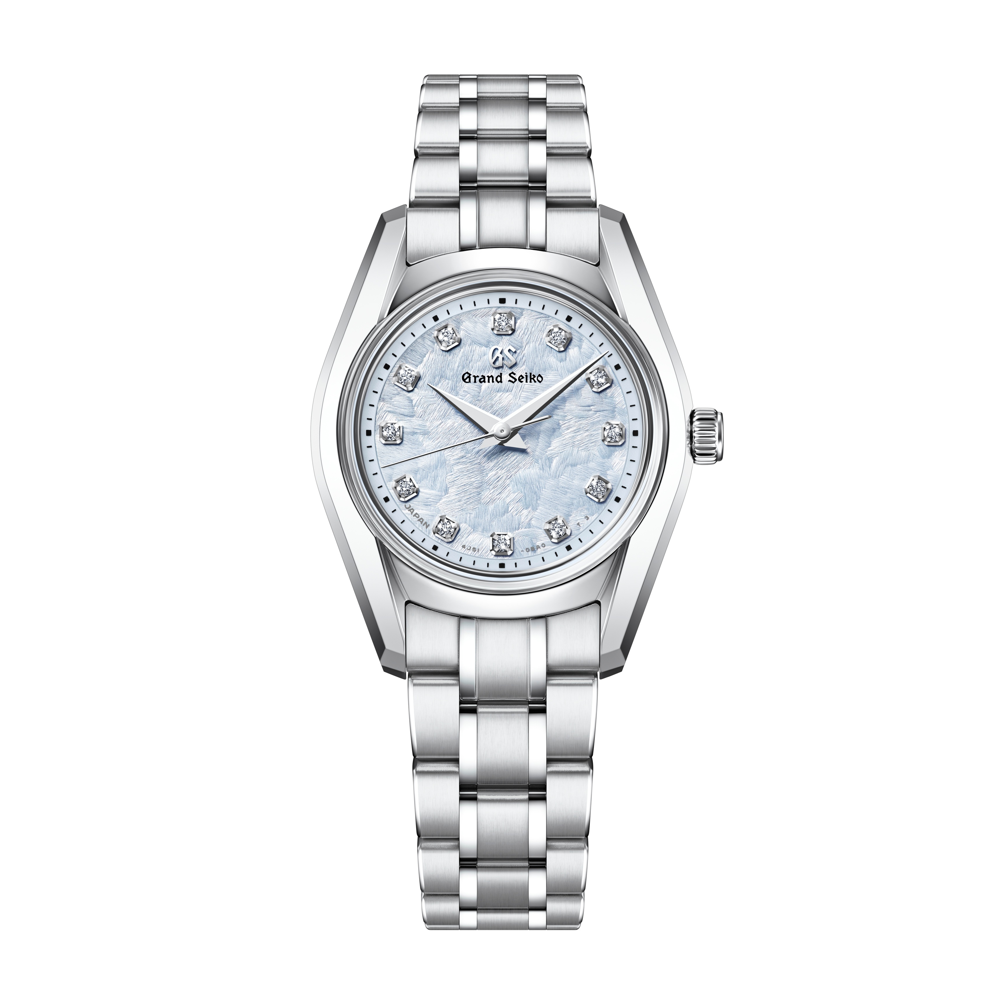 桜とともに光り輝く春の柔らかな風を表現した季語「風光る」をイメージしたスモールサイズのクオーツモデル。1967年発売のグランドセイコー史上初の自動巻機械式モデル「62GS」を現代的にアレンジした「62GS現代デザインモデル」をベースとし、日本特有の季節の移ろいをダイヤルで表現したモデルです。ベゼル(ガラス縁)のない構造によって広々と見えるダイヤルや、ザラツ研磨によって実現したシャープな多面体からなるケースが魅力です。ダイヤルは、桜の咲き渡る春の陽光の中を、爽やかな風が花びらを揺らし、きらめきながら吹きわたる情景を表現。ムーブメントは、年差±10秒のクオーツ「キャリバー4J51」を採用しました。