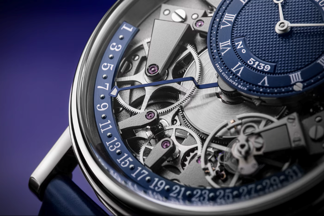 シリコン製の『ブレゲひげゼンマイ』が前面から視認でき、自動巻き機構はアブラアン-ルイ・ブレゲが考案した「ペルペチュエル」ウォッチのデザインから着想を得たローターを搭載しています。