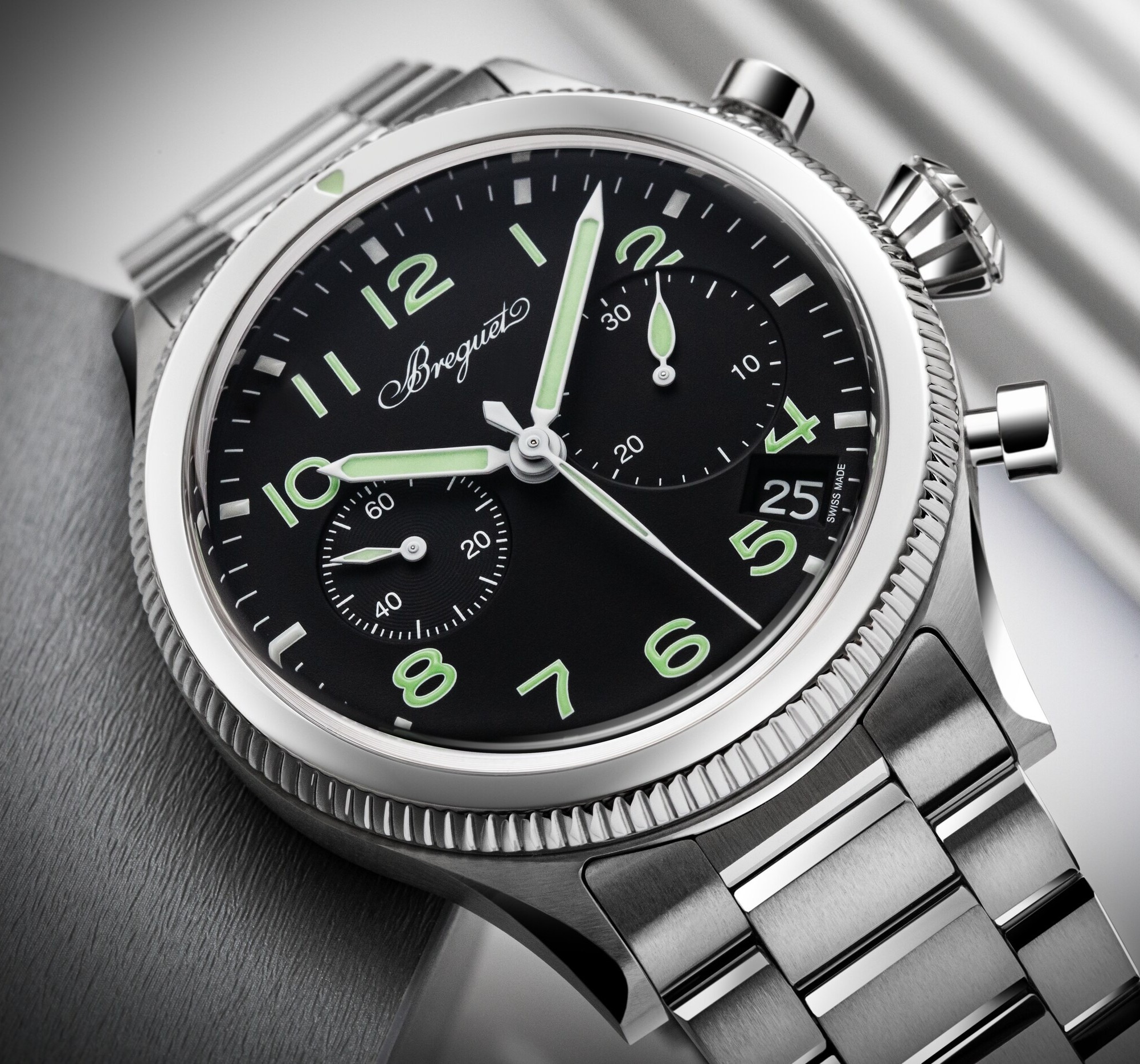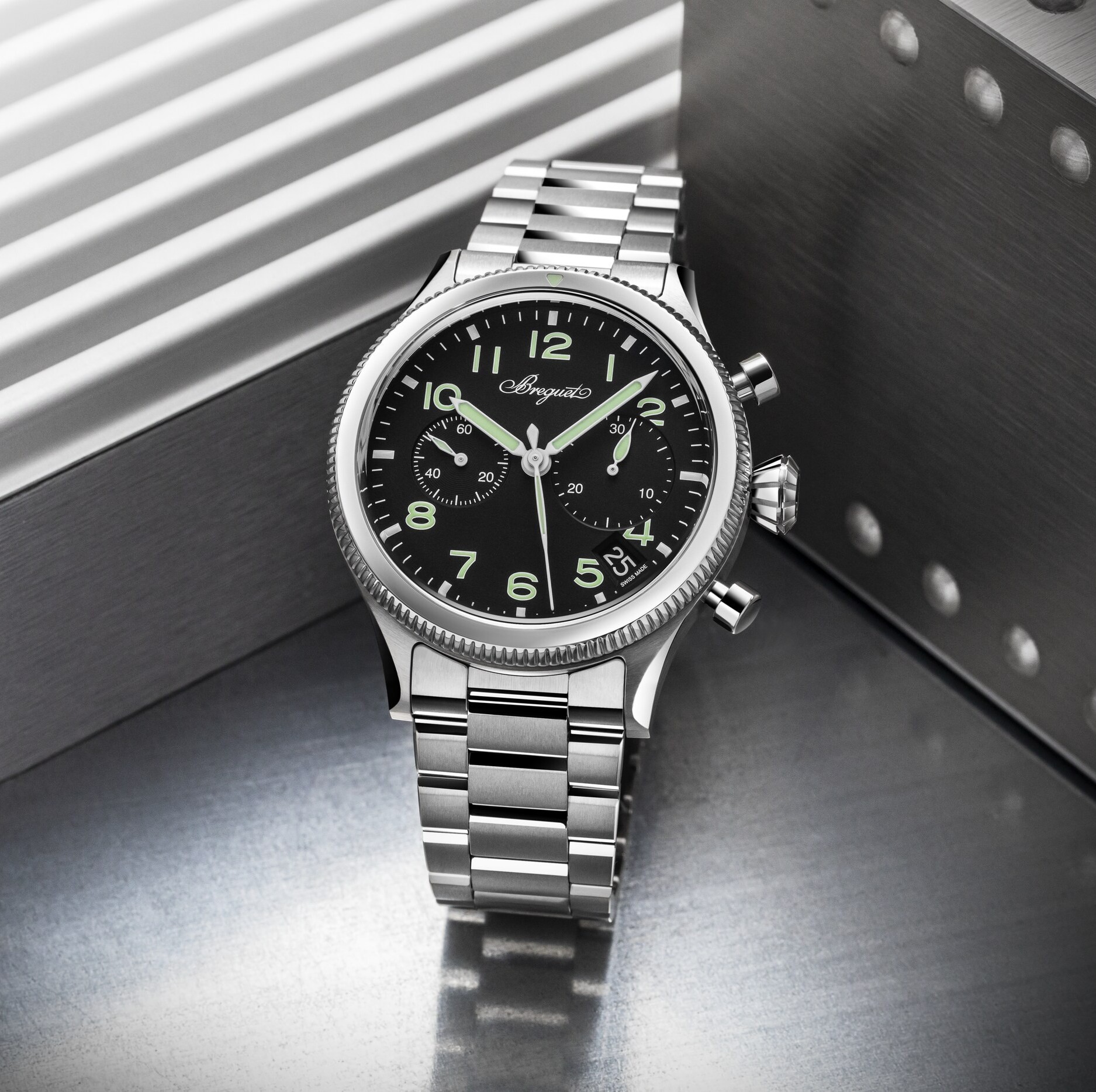 甦ったこのクロノグラフには、飛行中の連続した時間計測のために必要とされたフライバック機能もそのまま受け継がれています。