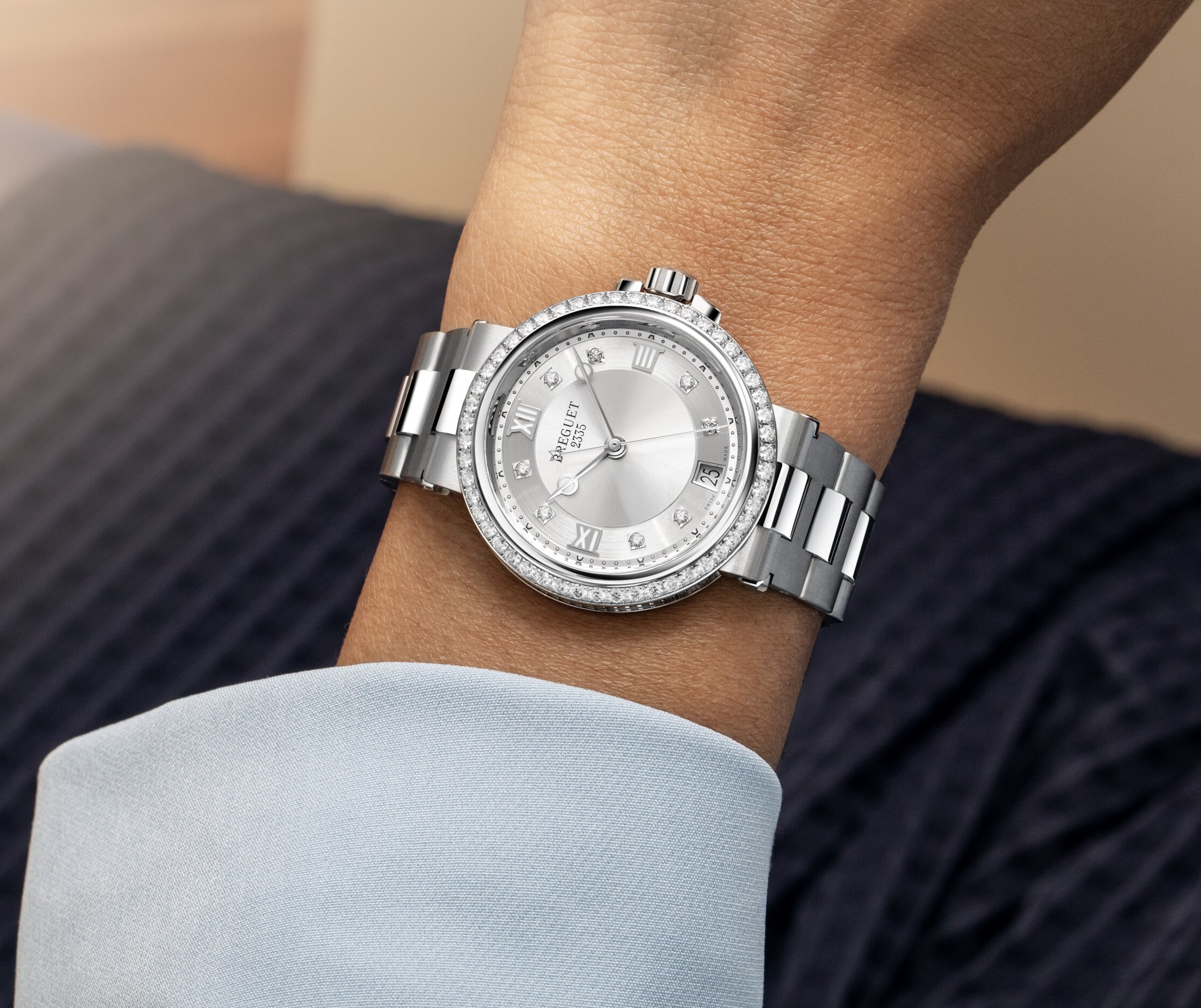 『マリーン』は、 フランス海軍のマリン・クロノメーター(航海用精密時計)の製造者としてアブラアン-ルイ・ブレゲが築きあげた偉大な遺産からヒントを得たコレクションです。