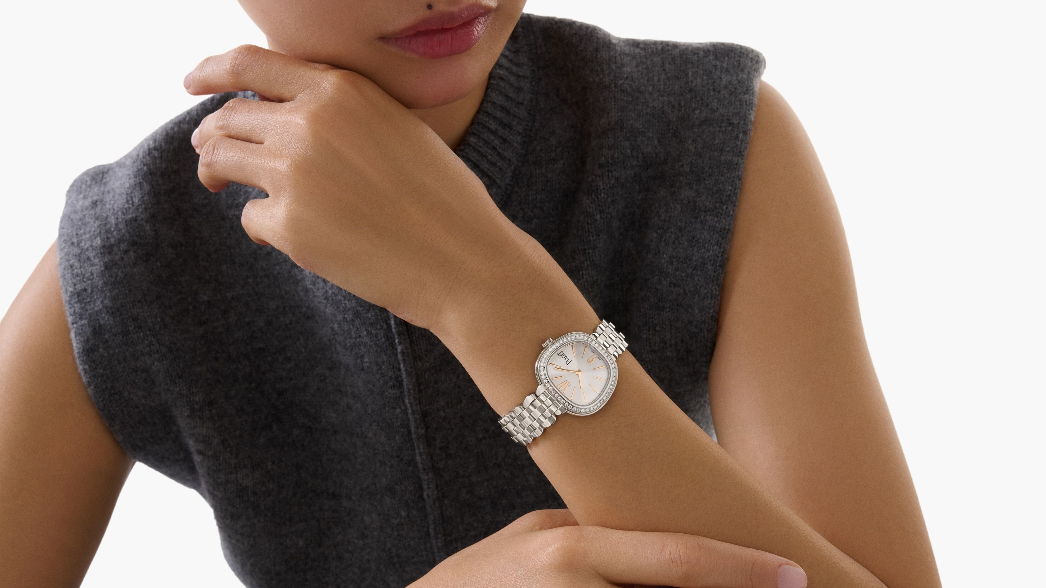 「ピアジェ ウォッチとは何より先にまずジュエリーである」とイヴ・ピアジェは語りました。手首をジュエリーのように彩るSixtieは、自由な精神を持ち、個性的であると同時に人々にインスピレーションを与える女性の美しさをたたえます。 どこにいても目を引き付けるトラペーズシェイプは、華やかさとエレガンスの優美なバランスの中にメゾンの伝統と現在が交差しています。
