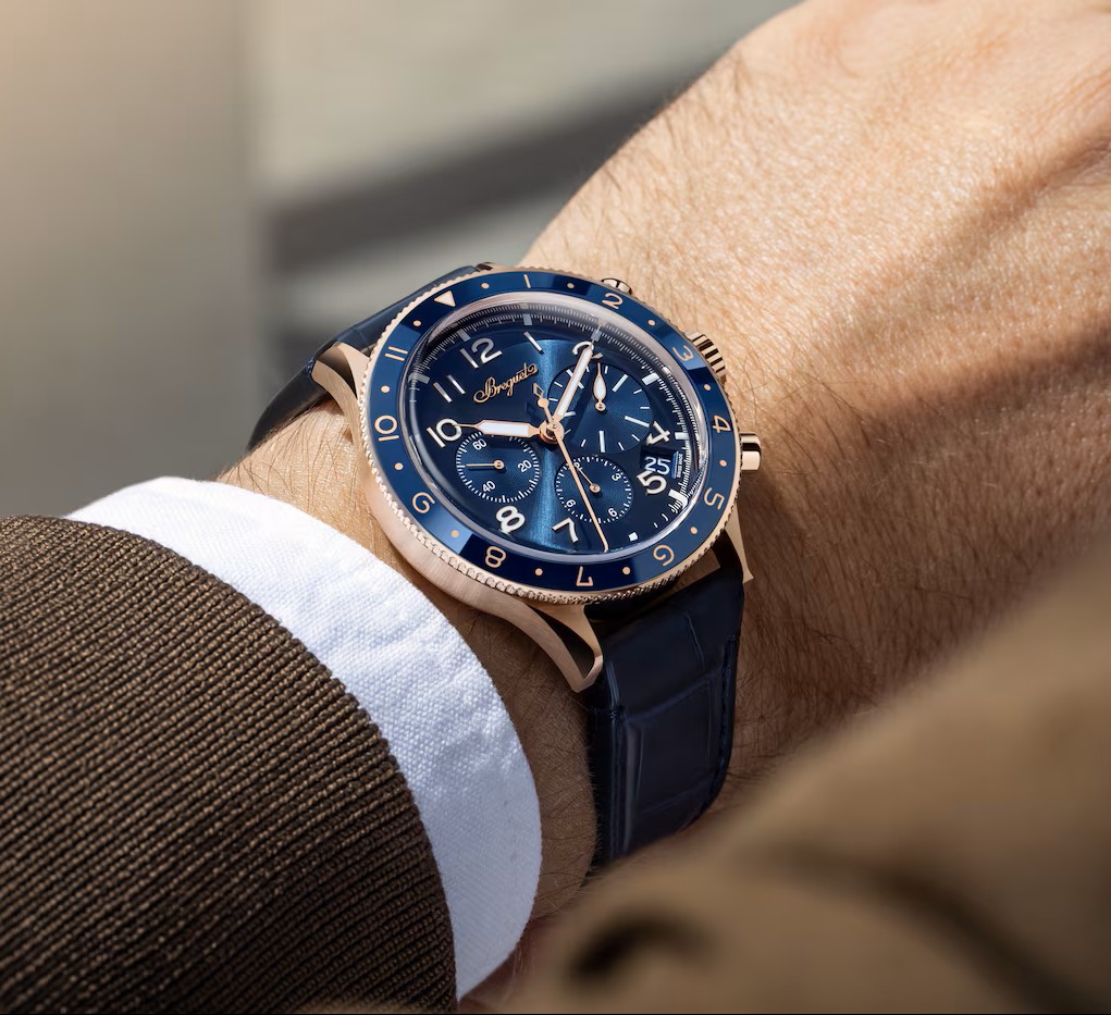 この新世代のゴールド製「Type XX」では、ブレゲのコレクションで初めて採用されたセラミック製両方向回転ベゼルが初めて採用されました。