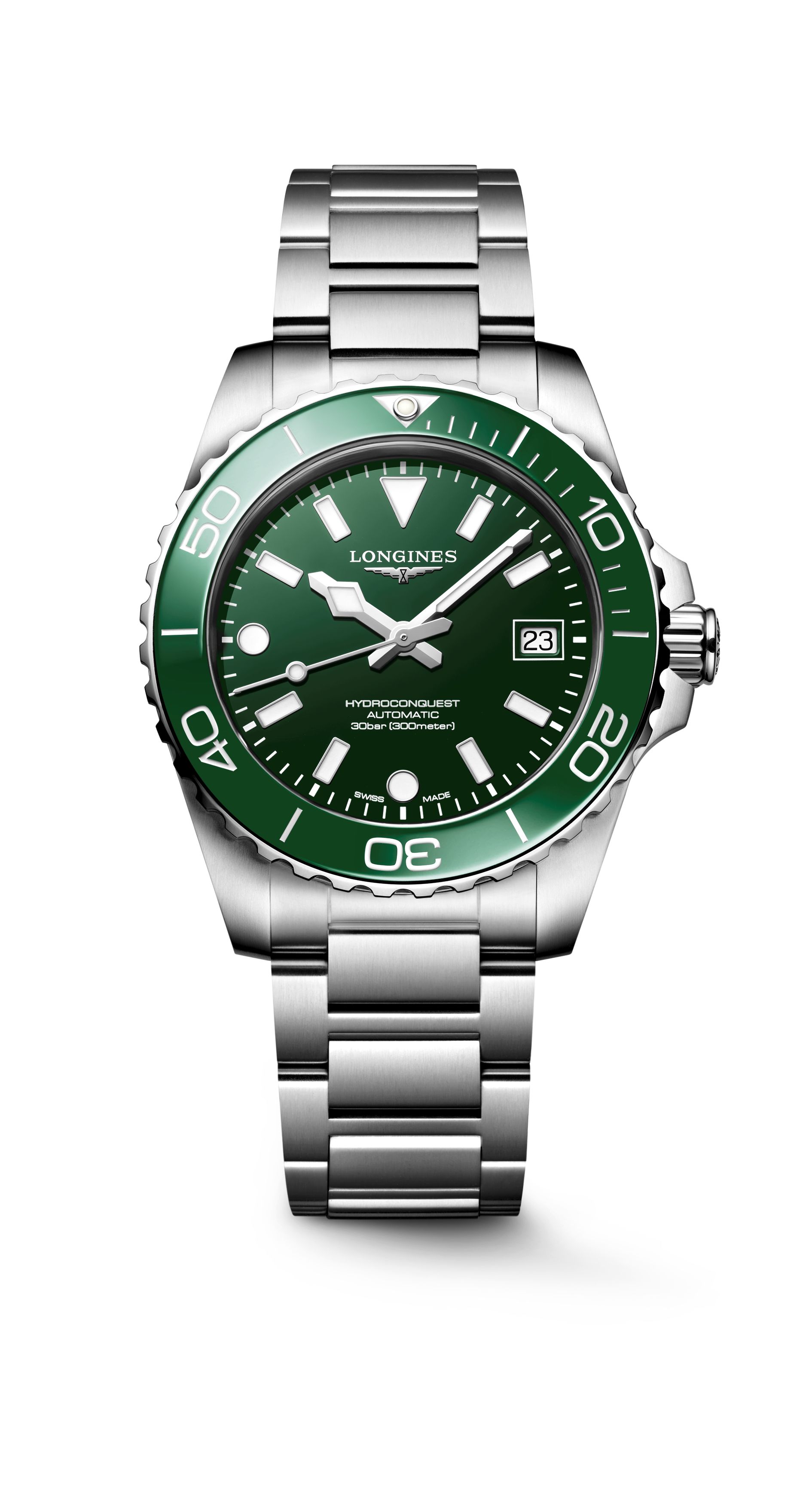 モダンな美しさと確かな性能が融合した「ハイドロ コンクエスト」コレクション ロンジン独自の自動巻きキャリバーを搭載し、30気圧(300m)の防水性能、逆回転防止ベゼル、ねじ込み式リューズ、ねじ込み式ケースバックを採用。