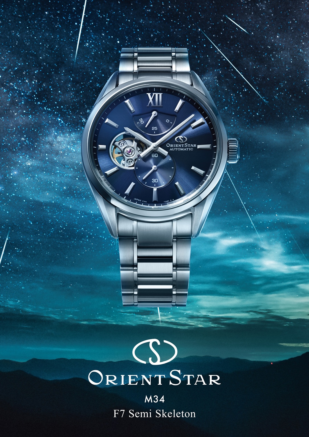 最新作のネイビー文字板はペルセウス座流星群をイメージさせる 美しい放射模様を施した文字板によって奥深い夜空を表現。