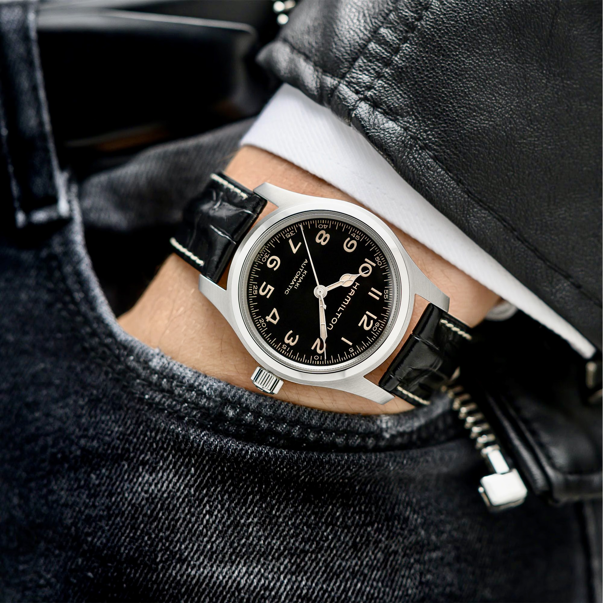 耐久性に優れたハミルトンのレザーストラップは、タイムレスな魅力を、快適性と汎用性を追求したメタルブレスレットは、洗練されたエレガントなエッジを添えます。