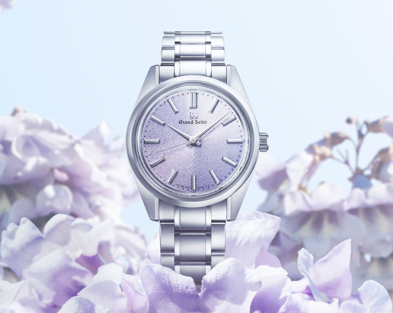 ブランドを代表するダイヤルパターンのひとつ「岩手山パターン」と、岩手県の県花でもある「桐」から着想を得た柔らかな紫のカラーリングを融合。