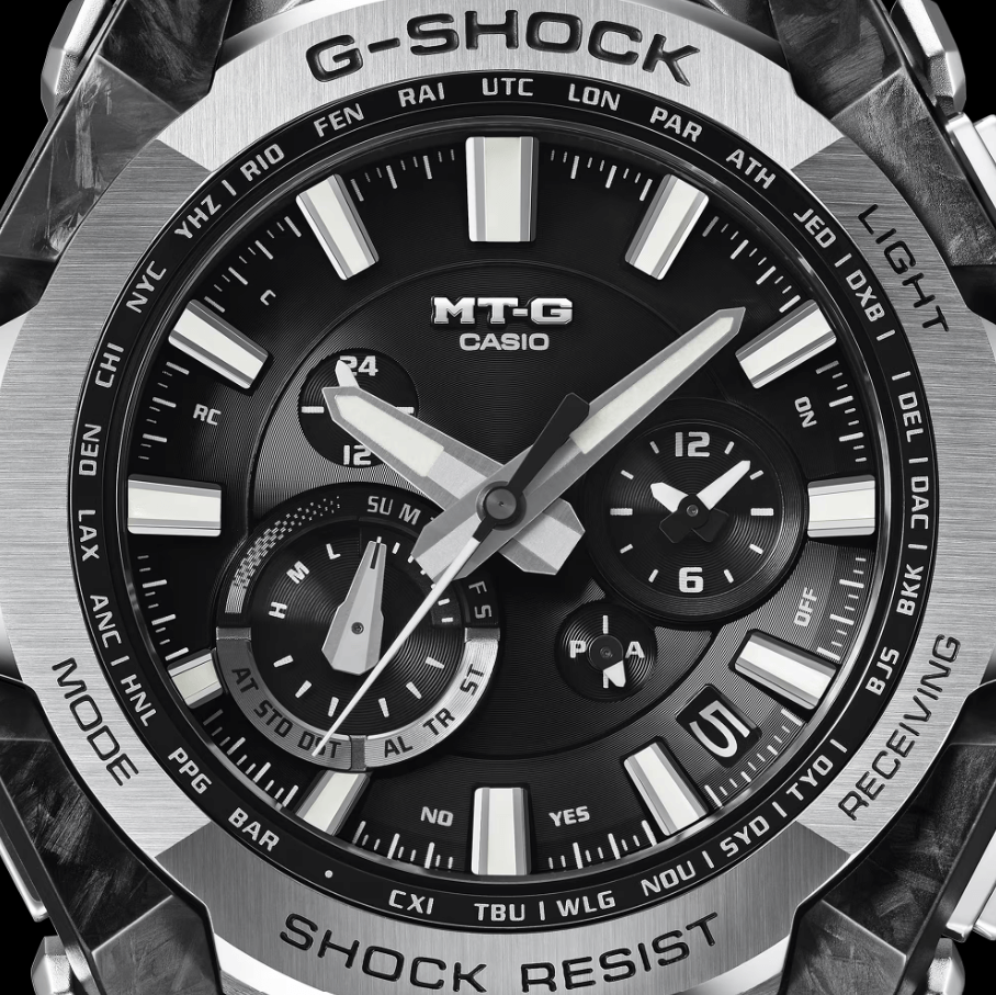 G-SHOCKの起源である樹脂素材とメタル素材を融合して、革新的な構造美を追求するMT-Gシリーズ。