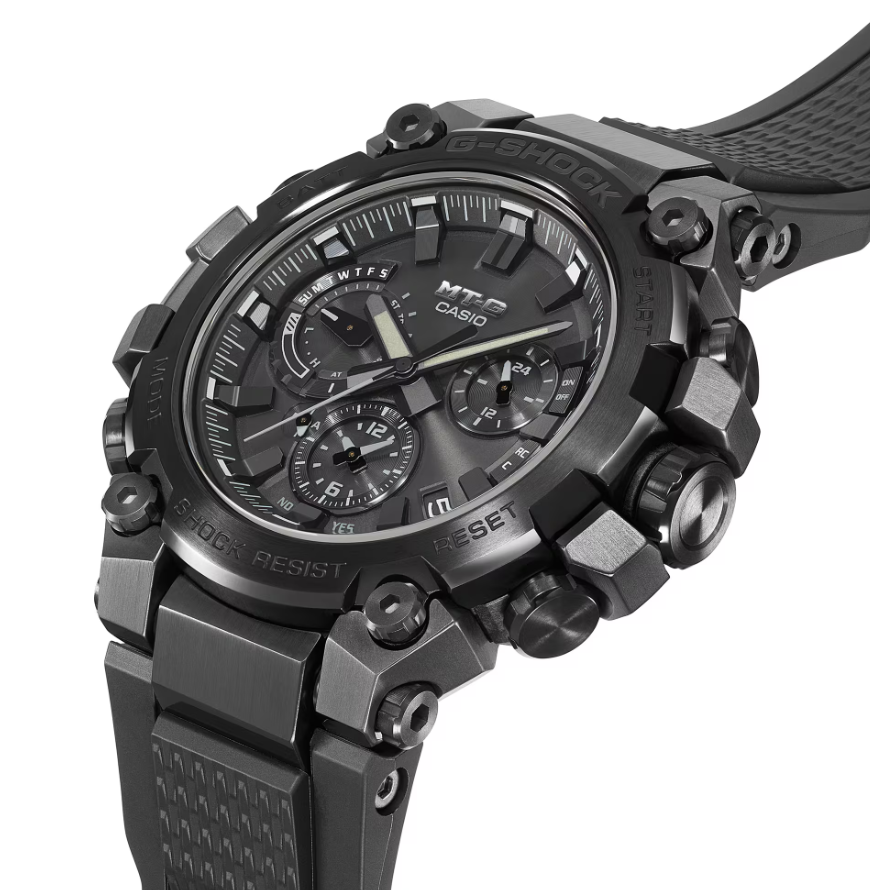 独自の設計思想により、メタル素材とG-SHOCKの起源である樹脂素材を融合して革新的な構造美を追求するMT-Gシリーズ。