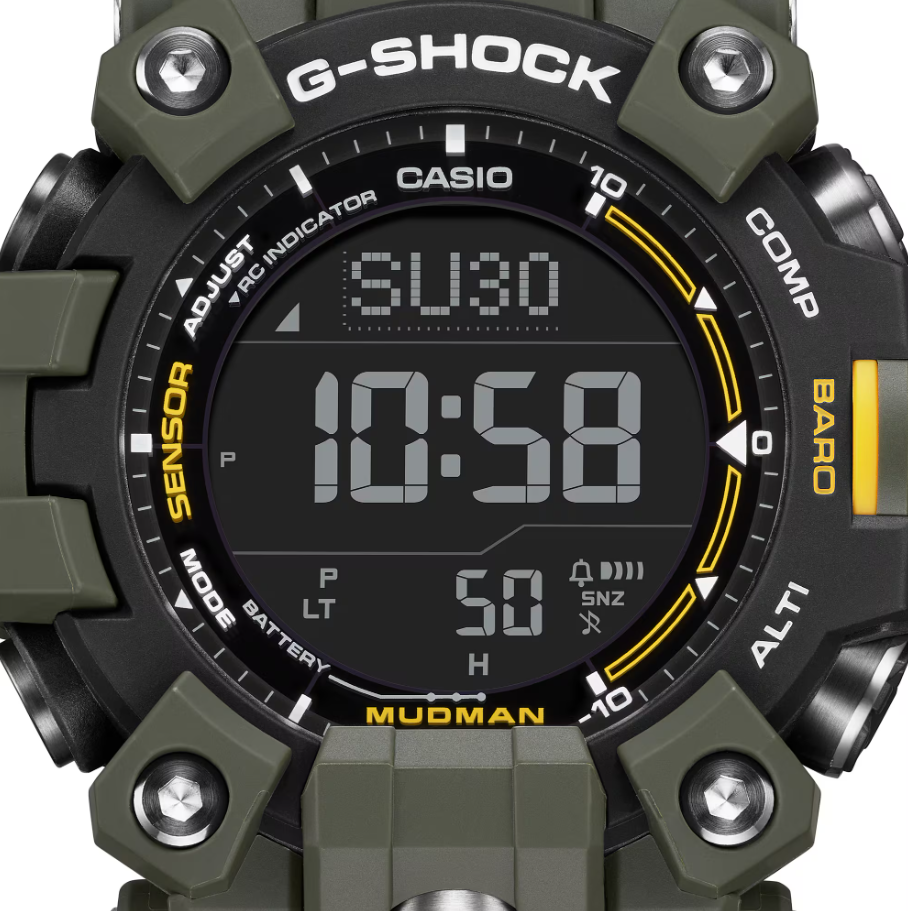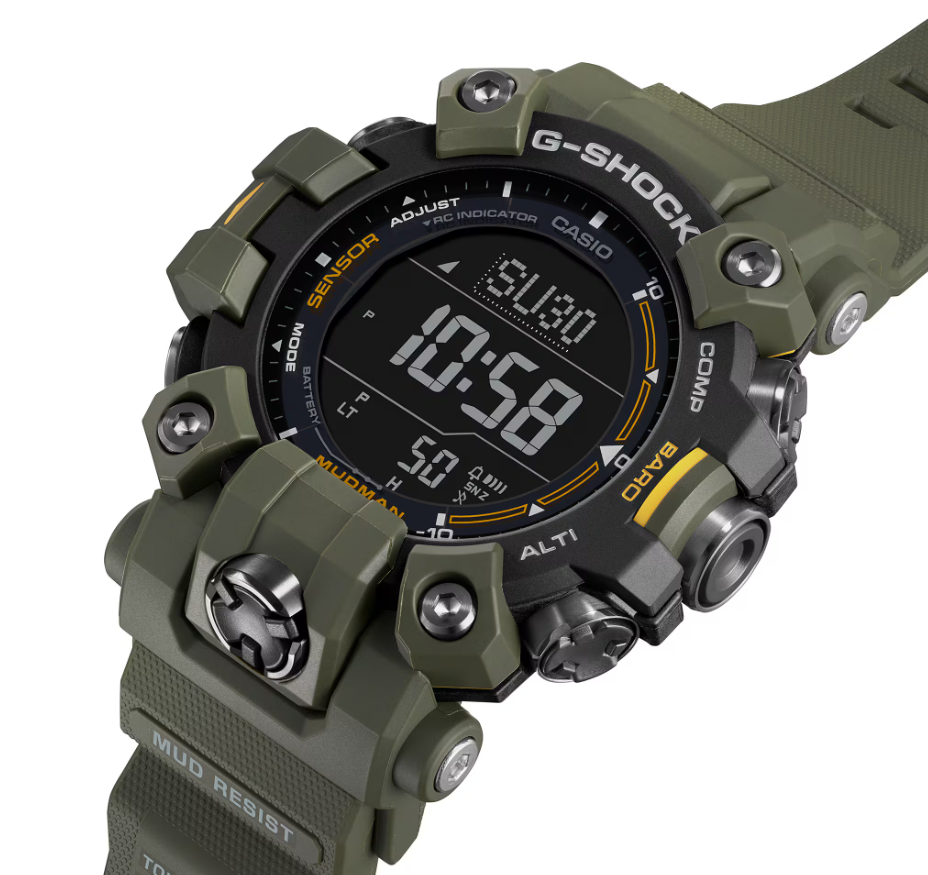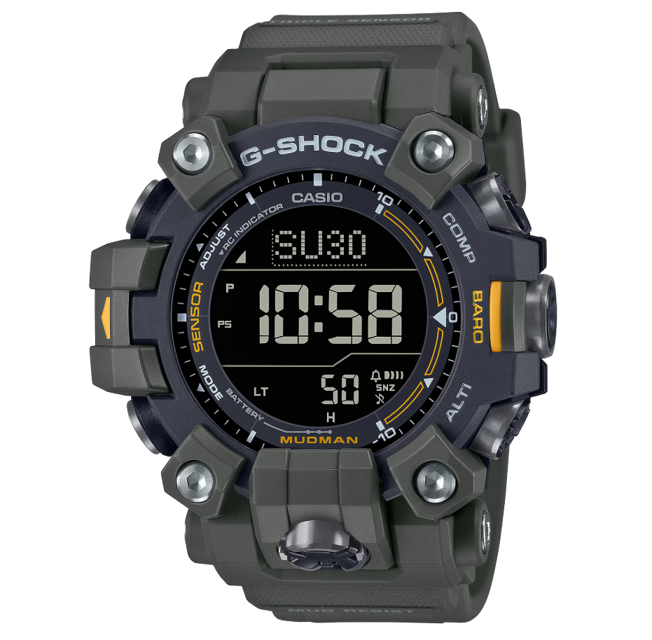 過酷な自然環境に立ち向かう男たちをサポートするG-SHOCK MASTER OF Gシリーズから、マッドレジスト構造を搭載したMUDMANのトリプルセンサーモデルです。