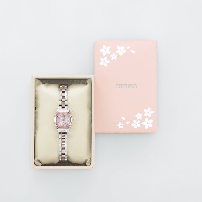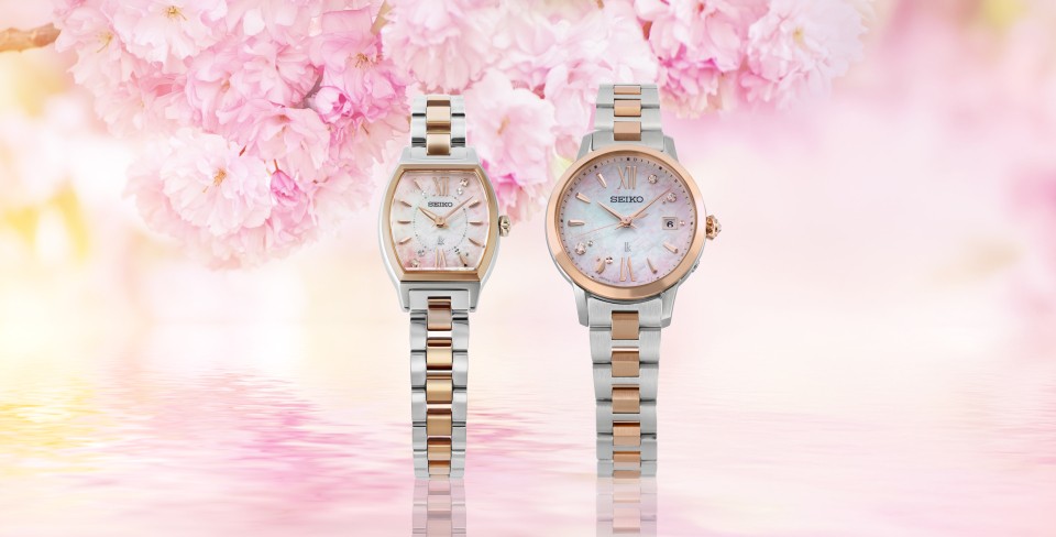 白蝶貝のダイヤルに🐚淡くやさしいピンクのグラデーションを重ね、華やかに咲き誇る八重桜と、水面に映る春のひとときを表現🌸