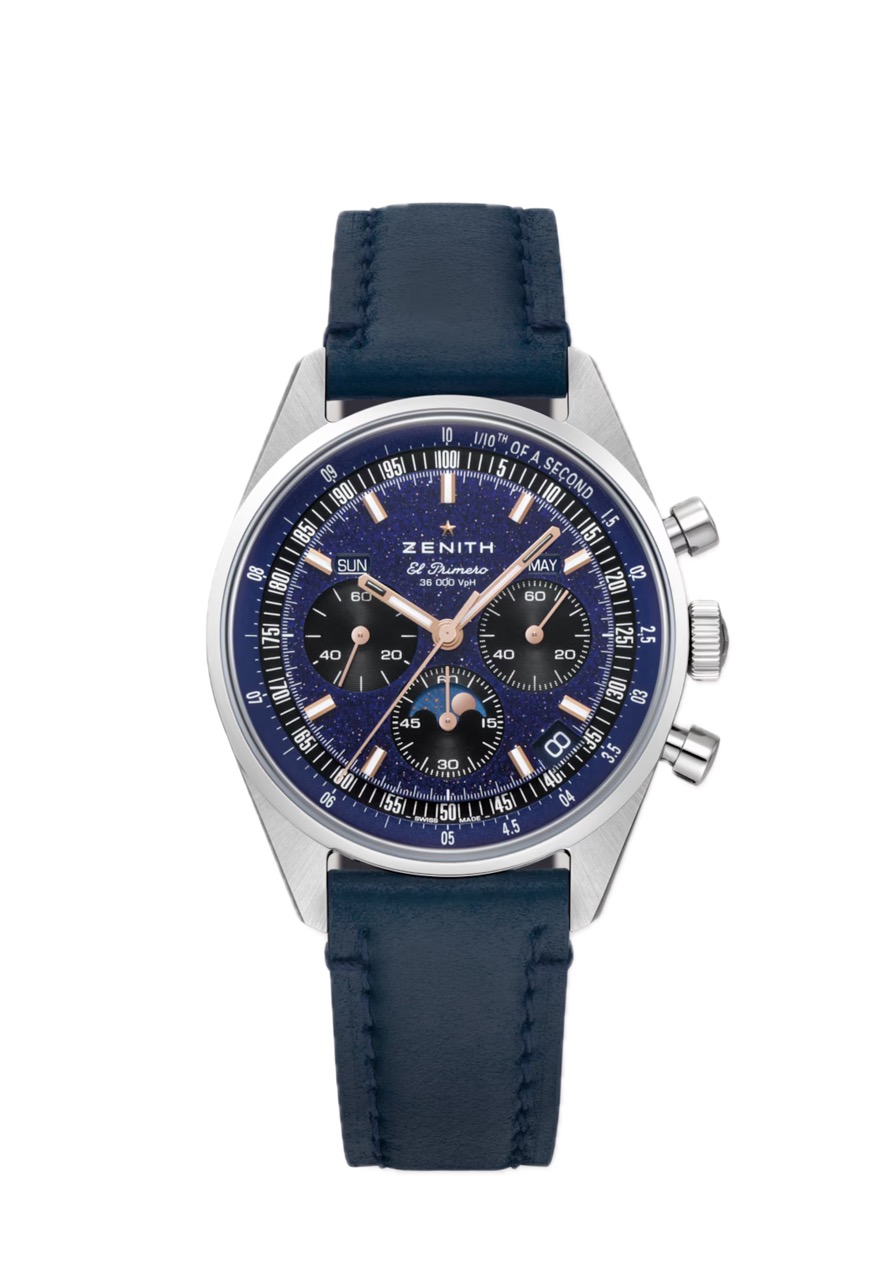 アヴェンチュリンを文字盤に採用した日本だけのスペシャル エディション。深く吸い込まれるような表情を持つアヴェンチュリンは、その繊細な素材の特性からごく一部のメゾンのみで時計の文字盤への採用が実現する素材です。現在、ゼニスでのアヴェンチュリンの採用は本モデルのみとなります。質感が変化していく特徴的なレザーであるコードバンレザーのストラップは、ユニークなタイムピースをさらに特別な存在にしてくれます。日本160本限定。