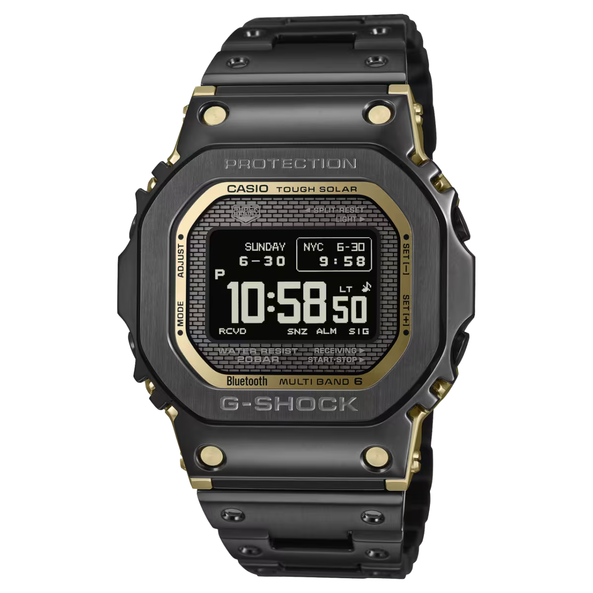 ベゼルとセンターケースを上下で連結した構造を開発。ケースサイドから見える造形が構造の美しさを強調。フルメタルながらG-SHOCKの耐衝撃基準をクリアし、気密性に優れたスクリューバックケースも採用しています。