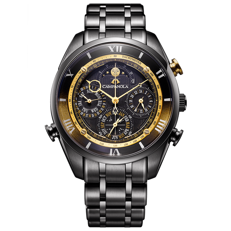 ミニッツリピーター、ムーンフェイズ、パーペチュアルカレンダー、クロノグラフ、時計の4大複雑機構をすべて搭載。