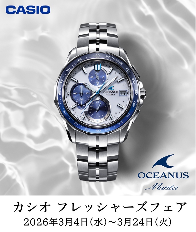 移転に伴って取り扱い商品は国産時計(セイコー・シチズン・カシオ)のみとなりましたが、売り場面積が県内最大級となり、各ブランドの取り扱い商品数が大幅に増えたことで県内随一の品ぞろえとなりました。