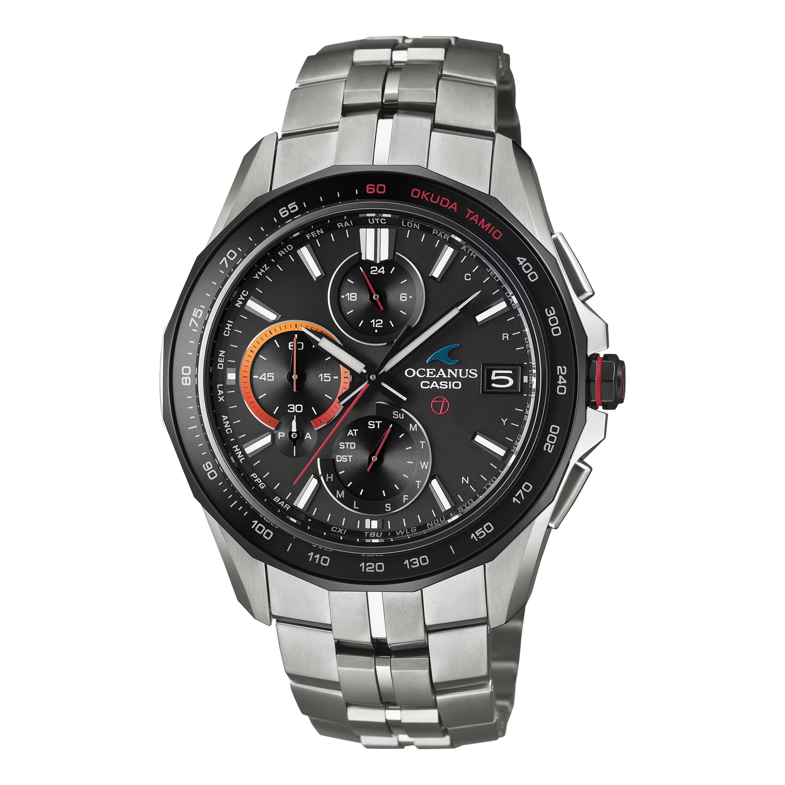 音楽へのこだわりと自分らしさを貫き、今なおミュージックシーンの最前線を走り続ける奥田氏の全面監修で仕上げた数量限定モデル。サファイアガラスベゼルのタキメーターには「OKUDA TAMIO」の文字と生誕60周年を祝い「60」の文字を赤色にし、9時側のインダイアルリングは、自身の好きな色であるオレンジと赤のグラデーションデザインを採用しています。ダイアル、りゅうず、中留カバーにはOTマークをデザインし、裏蓋には60歳を表した特別なロゴを刻印。専用パッケージをご用意した特別なコラボレーションモデルです。