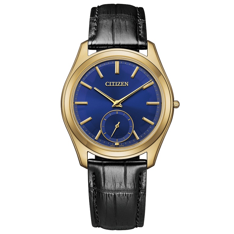 無駄を省いた薄型フォルムに調和するデザインを追求。6時位置のスモールセコンドはインデックスを短くし、ミニマルな印象に仕上げています。落ち着いたイエローゴールド色「アンバーイエロー」のケースに知性を感じさせる深いブルーの文字板を合わせたクラシカルな雰囲気が大人の落ち着きある時間を彩ります。