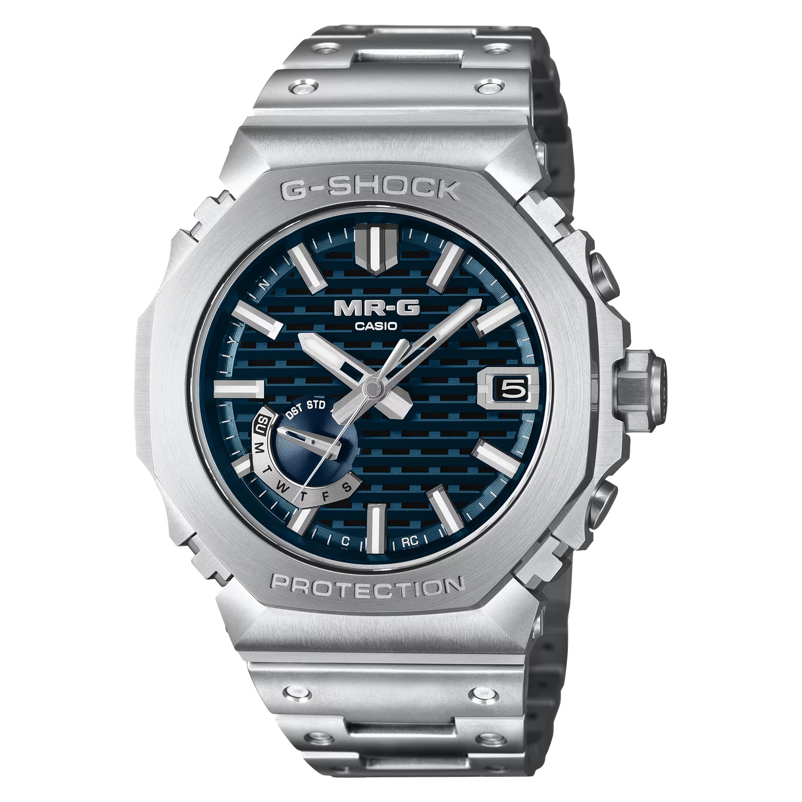 G-SHOCK最高峰モデルMR-Gの製造拠点を構える山形県には、東北地方で最も古く、国宝に指定されている五重塔が存在します。本モデルは、その静かな森に包まれた五重塔の荘厳な佇まいから着想を得て誕生しました。B2100シリーズを象徴する「木組」をモチーフにデザインしたダイアルに、朝霧がたなびく美しい情景を、日本伝統の青色といわれ、武将の甲冑などに多く用いられた「縹色(はなだいろ)」で表現。時を超えた力強さと凛とした存在感とともに、静謐な品格を腕元に宿します。