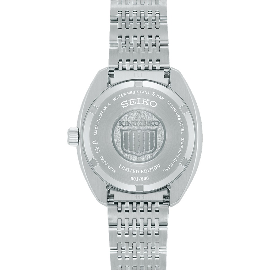 裏ぶたには1960年代当時のキングセイコーの「盾」をモチーフとしたブランドマークが刻印され、限定モデルの証として「LIMITED EDITION」の文字とシリアルナンバーが記されています。