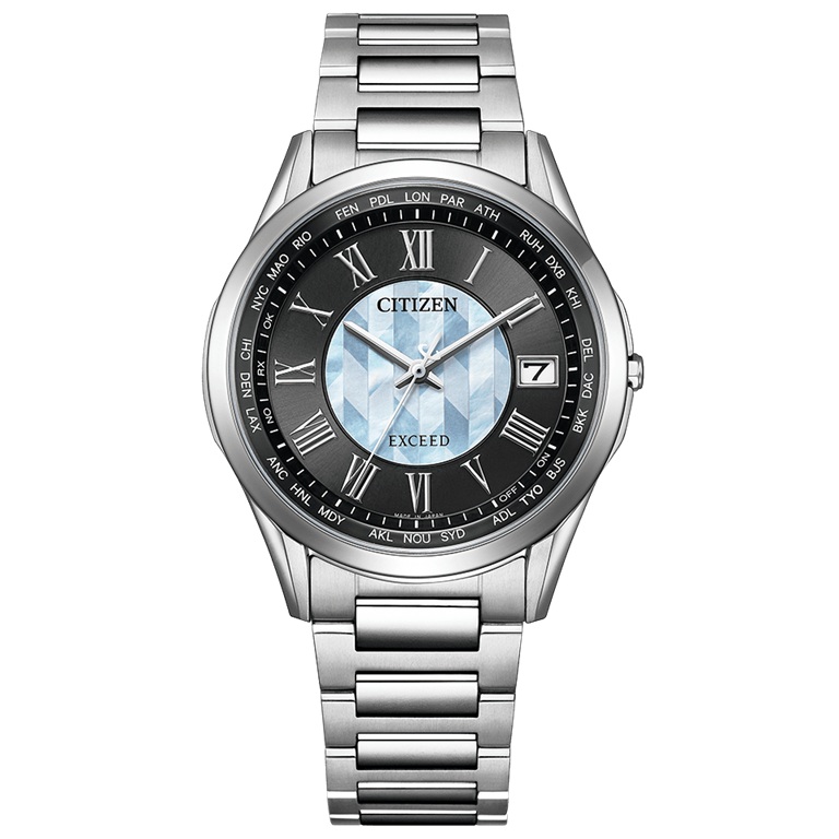 弓道や武道の神事において用いられる鏑矢の一種「蟇目鏑矢(ひきめかぶらや)」をモチーフにした限定モデル。矢の先端に「蟇目」と呼ばれる特殊な形状の鏑(かぶら)がついており、矢が放たれた際に鳴る音が新しい門出や祝い事を良い方向へ導き、邪気や災いを祓うとされています。カットした白蝶貝を貼り合わせ、インクジェット印刷と組み合わせることで矢羽根が連なる模様を表現。透明感のあるライトシルバーのケースとバンドが、凜とした表情を演出します。