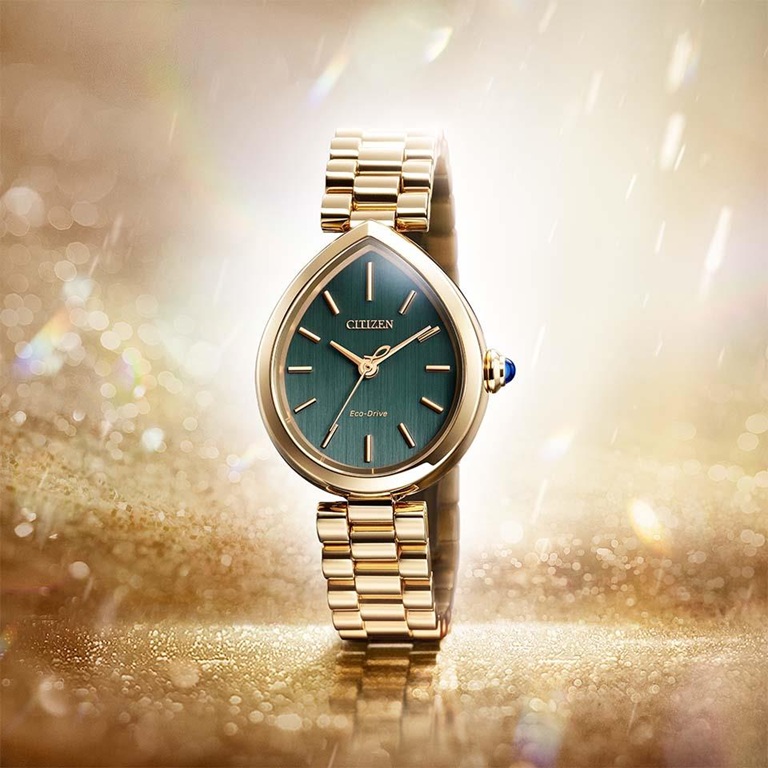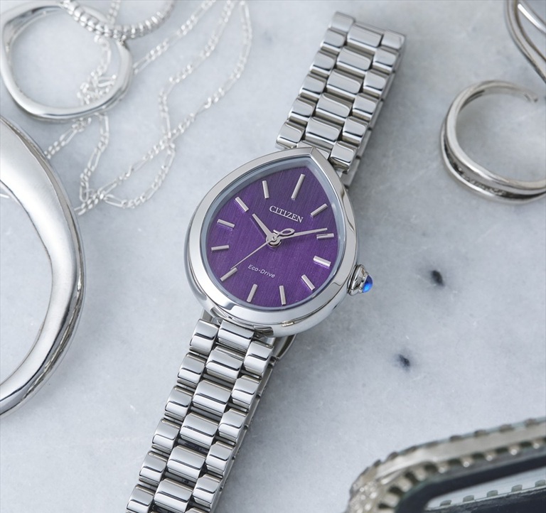 「Rain(雨)」と「Bella(美しい)」を組み合わせて名付けられた“RAINELL”(レイネル)。地球を潤し、世界を映しながら光を反射する雨の雫にインスピレーションを得たジュエリーライクなコレクションが登場致します。優雅な曲線を持つドロップ形状を印象付けるかのように、腕の動きでリズミカルな輝きを演出するボリュームある3列バンドを採用。彫刻的なフォルムは、立体感と陰影が美しく際立ち、どの角度から見ても洗練された存在感を放ちます。文字板には、霧雨を思わせるヘアラインパターンを施し、クラシカルで落ち着いたバランスのインデックスを配置、上品な印象に仕上げました。