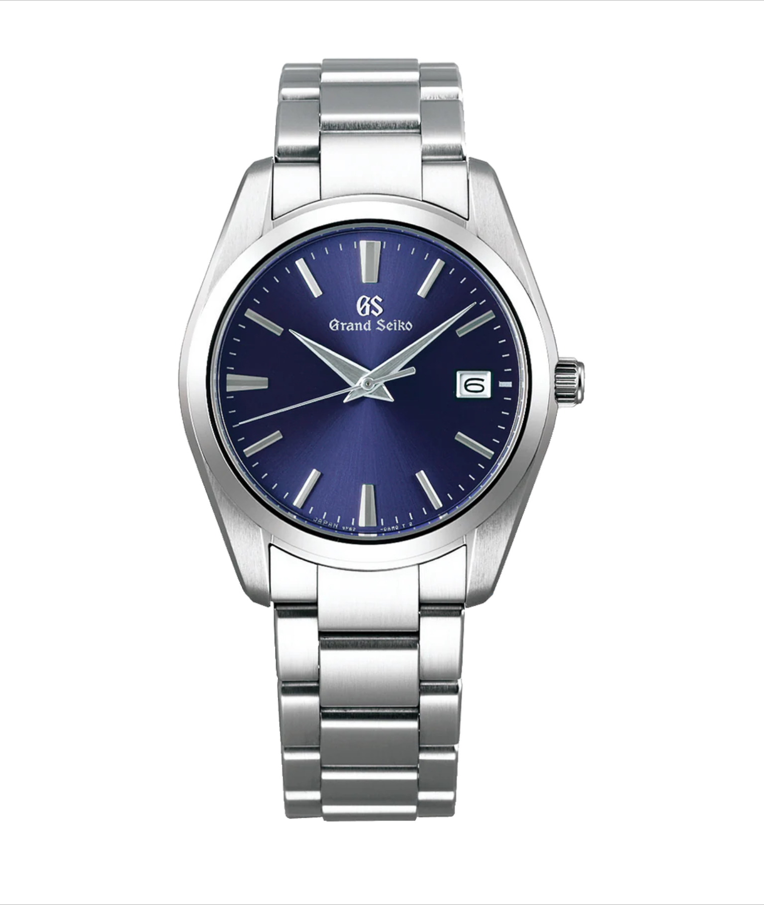 歪みのない美しい鏡面と、きめ細やかな筋目仕上げの施されたケースは、静かにその存在感を主張します。袖口に綺麗に収まる計算し尽くされた絶妙なケースサイズで、ブルーのダイヤルがスポーティな表情を演出します。奥ゆかしくも確固たる安心と信頼を寄せるパートナーとして相応しい仕上がりです。