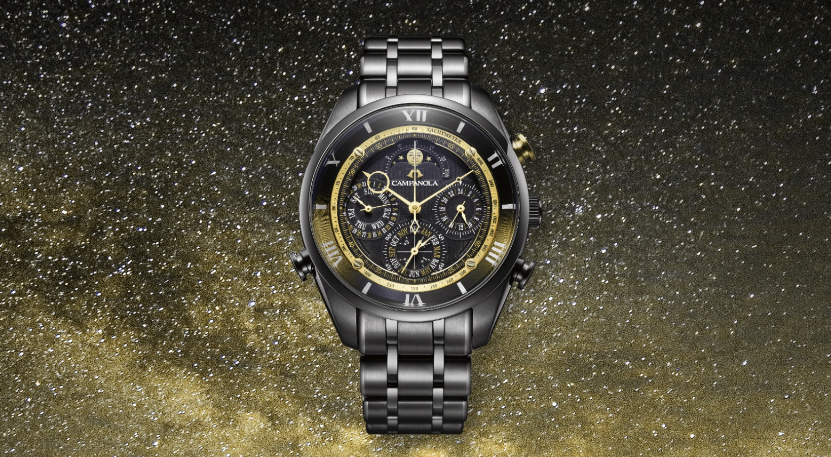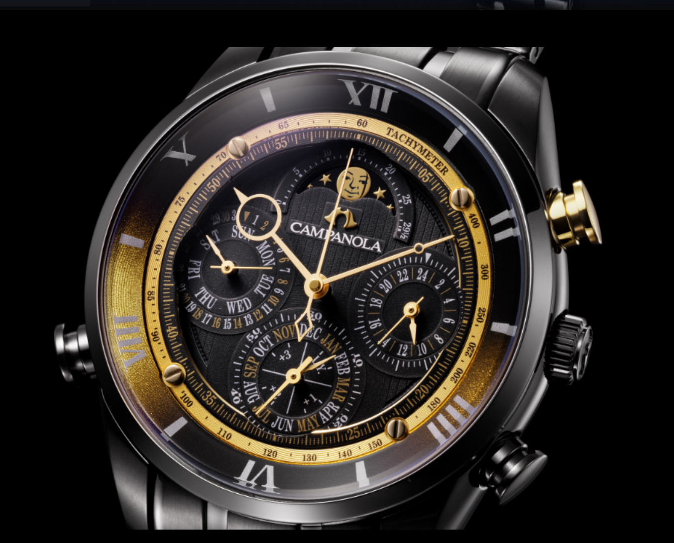 「宙空の美」を表現し、独のデザインと機構で「時を愉しむ」ためのウオッチ、CAMPANOLA (カンパノラ「星醬(ほしのひびき)」は、漆黒の宙でき合う星をテーマに、ブランド 25周年を記念した限定モデルです。